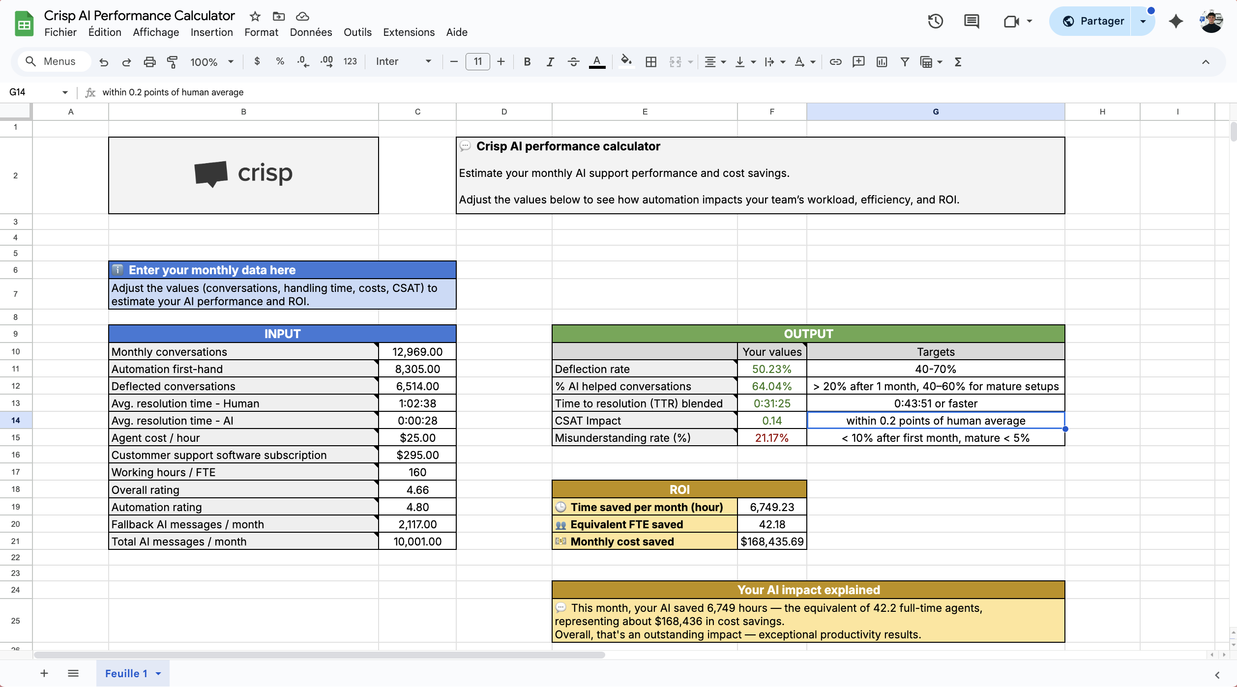 With Crisp Analytics and the ROI Calculator, you can understand exactly how many conversations your AI prevents, how much time it saves, and where you can improve.